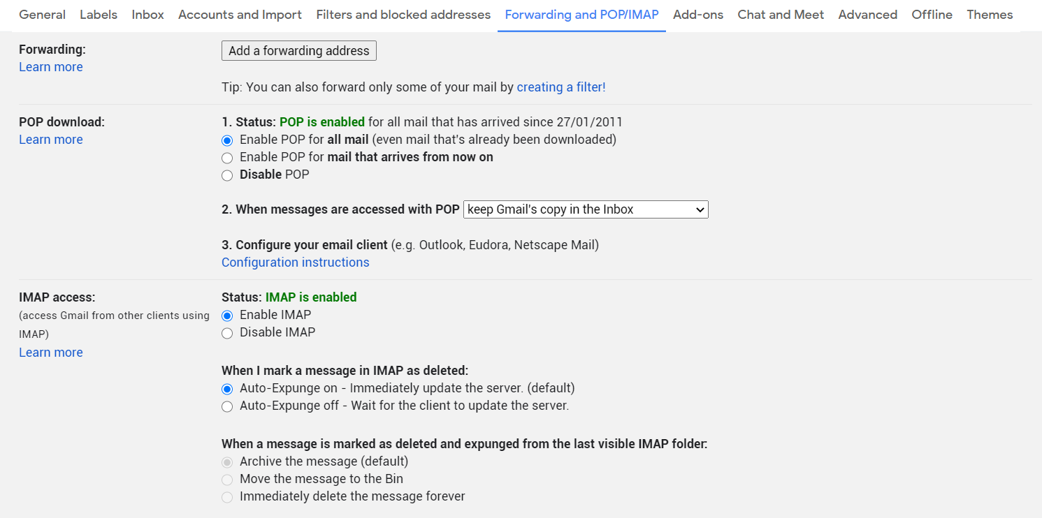 - Make sure Enable Imap for mail is selected under “Forwarding and POP/IMAP” Gmail settings.