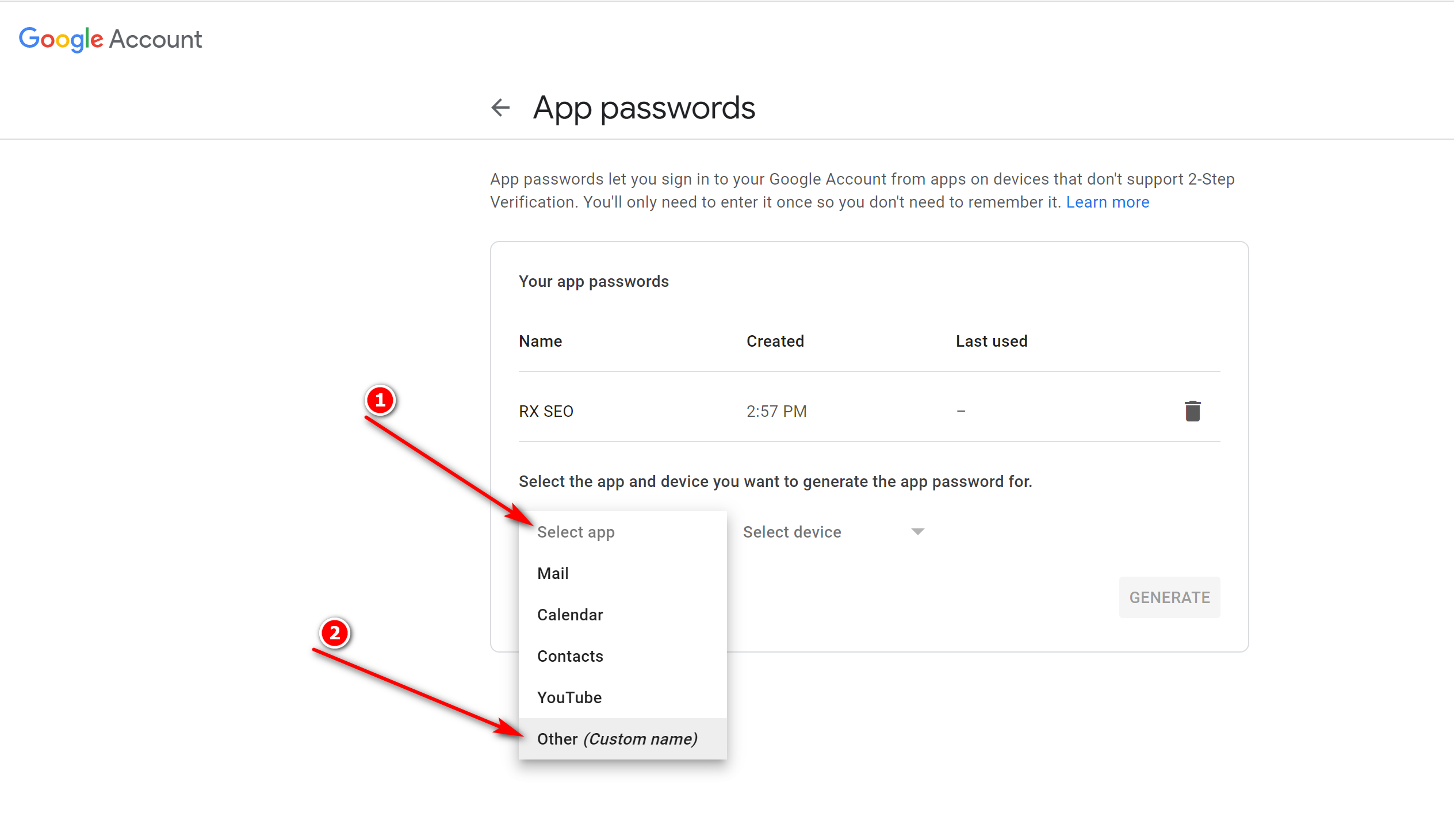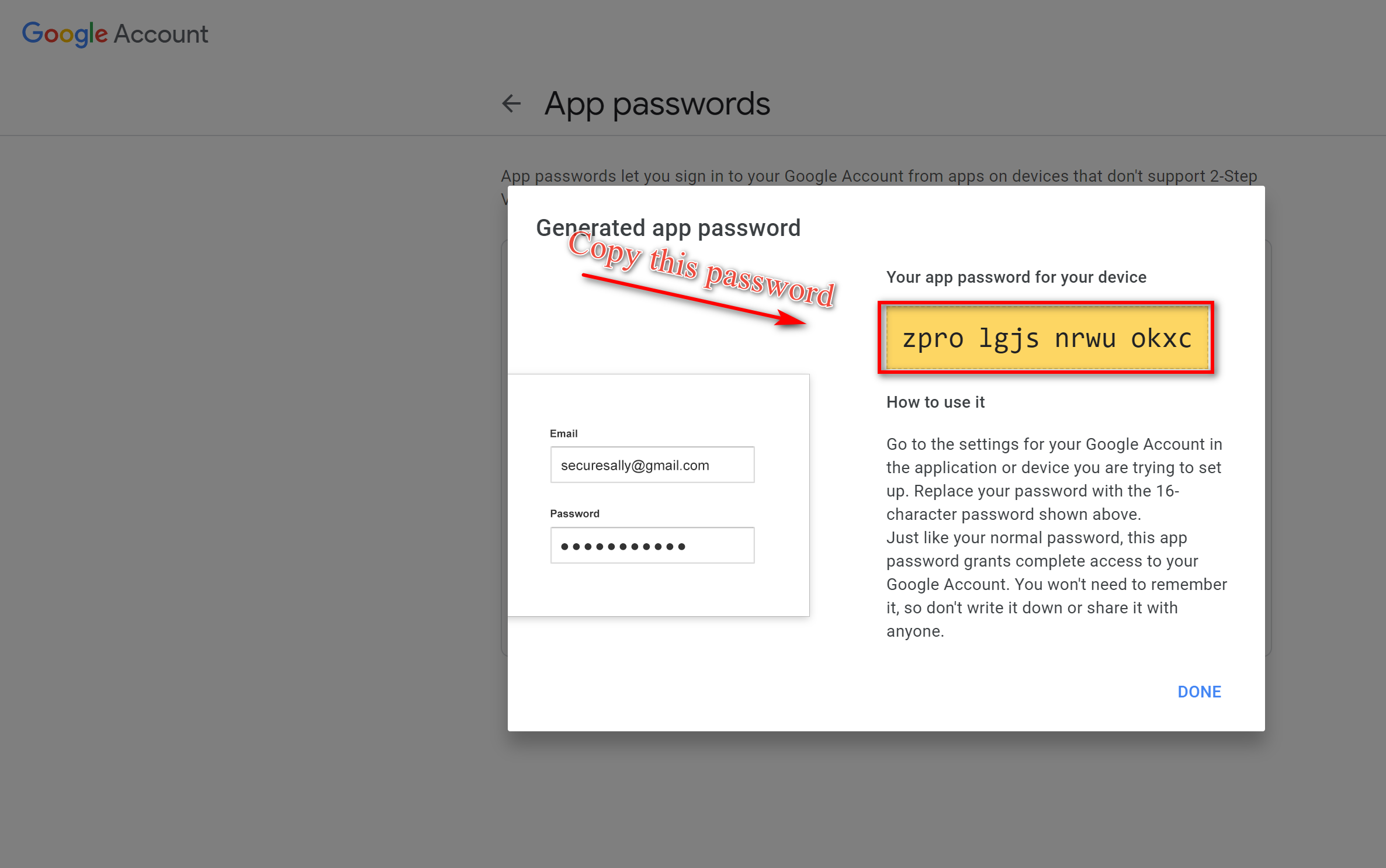 ΑΤΤΕΝΤΙΟΝ: App Password can only be used with accounts that have 2-Step Verification turned on.